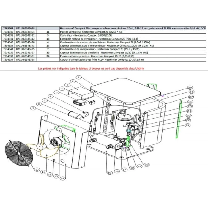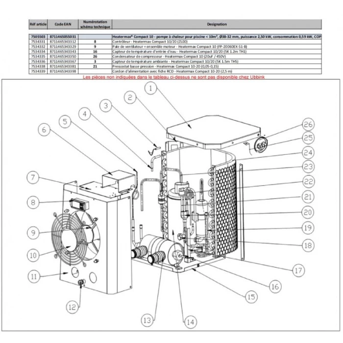Cette pièce est spécifiquement compatible avec les pompes à chaleur Ubbink HeaterMax pour piscines de 10 et 20 m³.