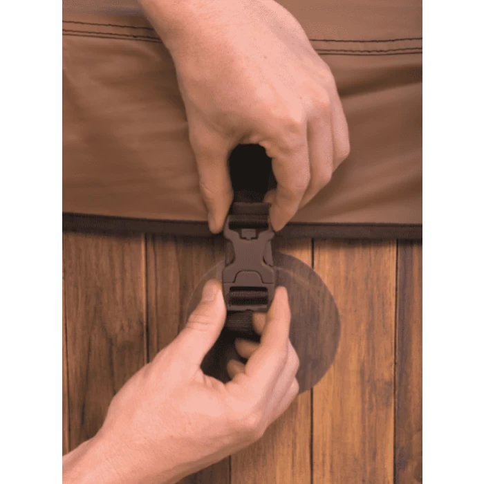 Le spa Helsinki se démarque des autres spas gonflables du marché par son apparence imitation bois et ses contours fins.